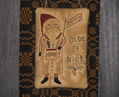 Title (ebay affiliate link): Primitive Stitchery Hanger ~ Merry Olde St. Nick ~ Winter/Christmas