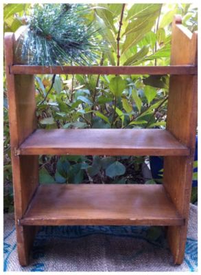 Title (ebay affiliate link): BEAUTIFUL VINTAGE PALE PINE EUROPEAN TABLETOP SHELF WITH CARVED DETAILS -