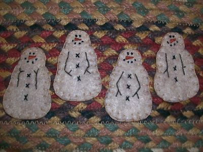 Title (ebay affiliate link): Primitive stitchery Christmas Snowman snowmen ornaments ornies *Set of 4* cute