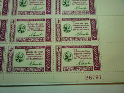 Title (ebay affiliate link): 1960 CREDO ABRAHAM LINCOLN Stamps Face $2.00 SC# 1143 MNH SHEET OF 50