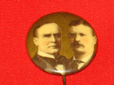 1900 William McKinley, Theodore Roosevelt Campaign Pin Pinback Button Badge
