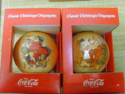 2 coca cola santa christmas ornaments nos in box nice corning glass works