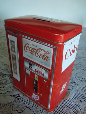 Title (ebay affiliate link): Coca Cola (Classic) Vending Machine Tin coin bank