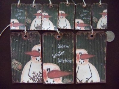 Title (ebay affiliate link): SNOWMEN primitive tags PRIMITIVE COUNTRY prim MAKE-DO gift tags GRUBBY TAG prim