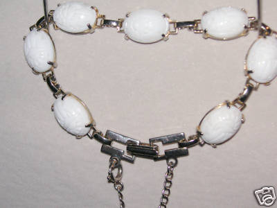 GORGEOUS MILK GLASS EGYPTIAN SCARAB VINTAGE BRACELET
