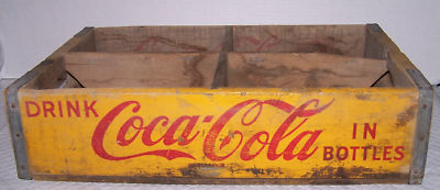 Title (ebay affiliate link): Vintage Yellow & Red Coca Cola Coke Wood Wooden Box Carrier or Crate