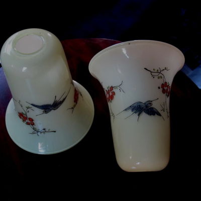 Title (ebay affiliate link): A PAIR OF HANDPAINTED SWALLOWS ON YELLOW GLASS LAMP SHADES ANTIQUE 30'S