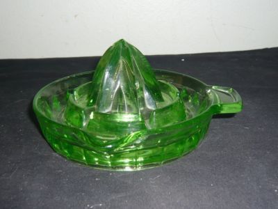 GREEN DEPRESSION GLASS TAB HANDLE REAMER JUICER