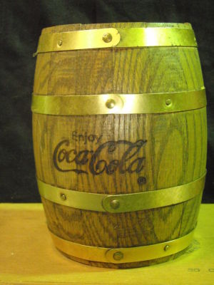 Title (ebay affiliate link): Coca-Cola Wooden Barrel Coin Bank, six inches high