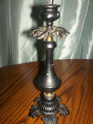 Title (ebay affiliate link): BEAUTIFUL ANTIQUE CANDLE HOLDER UNKNOWN METAL AND WOOD NICE 8 1/2 INCHES TALL