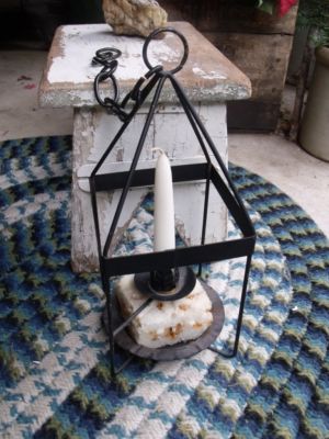 Title (ebay affiliate link): Primitive Vintage Hanging Wrought Iron Candle Lantern Candle Holder