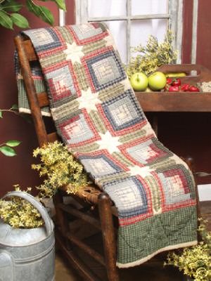 Primitive Folk Art Olde Log Cabin Quilt Wall Hanging