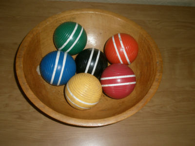 Title (ebay affiliate link): SET OF 6, LARGE, VINTAGE, WOODEN, RIBBED CROQUET BALLS