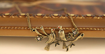 Title (ebay affiliate link): Antique Bronze Dual Love Birds Tree Retro Necklace109#