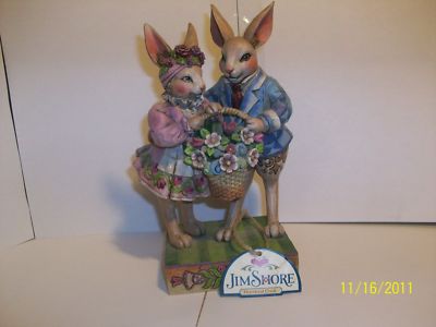 Title (ebay affiliate link): "happy together: from Jim Shore--Human dressed rabbit couple with flower basket