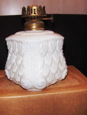 VINTAGE~~~MINIATURE MILK GLASS OIL LAMP