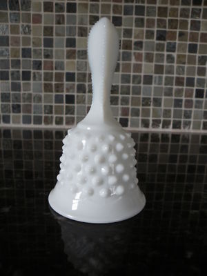 Title (ebay affiliate link): Fenton Glass Milkglass Hobnail Bell Metal Clapper EX.CD. White