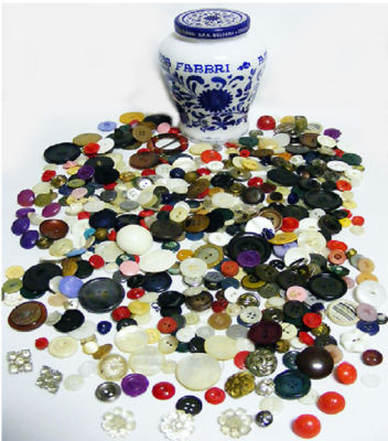 Title (ebay affiliate link): HUGE Vintage lot of SEWING BUTTONS in Blue Delft Milk Glass Jar FABBRI ITALY