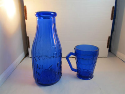 Title (ebay affiliate link): Cobalt Blue Glass Liberty Pint Milk Bottle & Handled Glass
