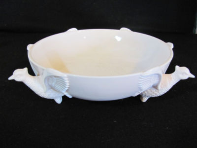 Title (ebay affiliate link): PINK MILK GLASS FOOTED BOWL HELD UP BY 3 MILK GLASS PHEASANTS.