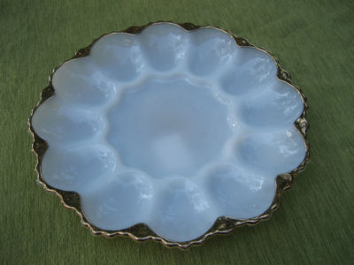 Milk Glass Egg Dish or Sushi plate