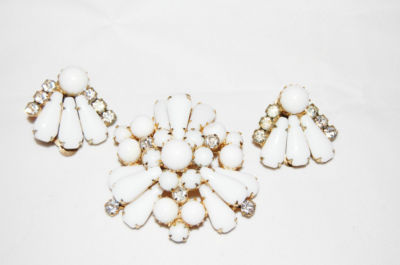 JULIANA D&E WHITE MILK GLASS CLEAR RHINESTONES