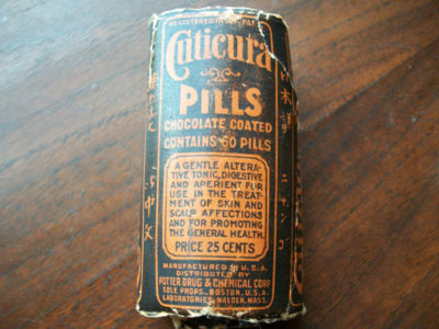 Title (ebay affiliate link): Antique Full Bottle of Cuticura Quack Chocolate Covered Pills