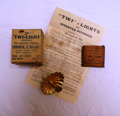 Title (ebay affiliate link): ANTIQUE VICTORIAN TWI - LIGHTS INVERTED GAS LAMP BURNER AND 3 GAS MANTLES - NOS