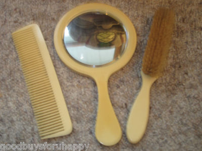 Title (ebay affiliate link): Antique Celluloid Dresser Vanity Set Mirror Brush Comb