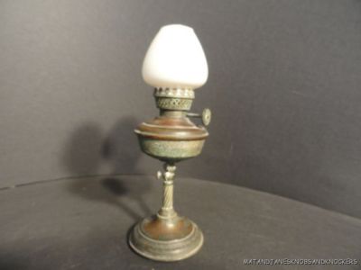 Title (ebay affiliate link): BEAUTIFUL ORIGINAL VICTORIAN MINIATURE PARAFFIN OIL LAMP BRASS AND GLASS