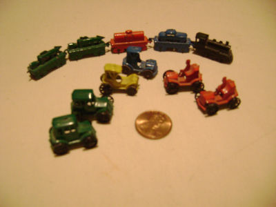 Title (ebay affiliate link): Miniature metal antique Model T, Model A cars, and train set circa 1950's-60's