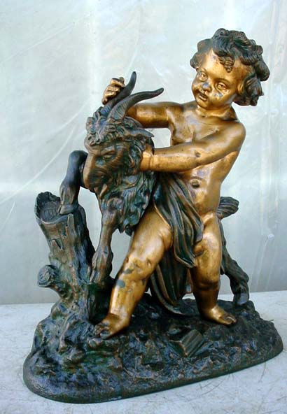 Title (ebay affiliate link): BEST LARGE ANTIQUE METAL CHERUB & GOAT CLOCK TOP STATUE