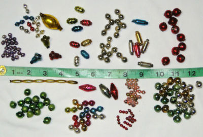Title (ebay affiliate link): 100+ LOT OF VINTAGE MERCURY GLASS GARLAND BEADS LARGE UNUSUAL BELLS TUBES BALLS