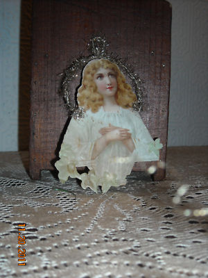 Victorian Scrap,Tinsel Xmas Ornament, Angel w Ivy,Diecut, 5",1890 Album
