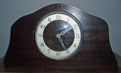 Title (ebay affiliate link): ANTIQUE c1930 ART DECO GERMAN OAK MANTLE CLOCK works ok