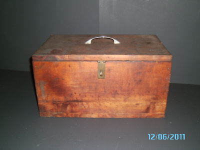 VINTAGE HANDMADE WOOD TOOL BOX TOTE WOODEN PRIMITIVE