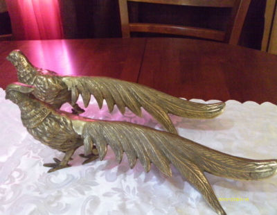 | bronze? brass? pheasants x 2 (japan) sculptures |