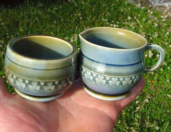 Title (ebay affiliate link): VINTAGE WADE IRISH PORCELAIN SUGAR BOWL&MILK JUG CREAMER-EMBOSSED CLOVER BANDS!
