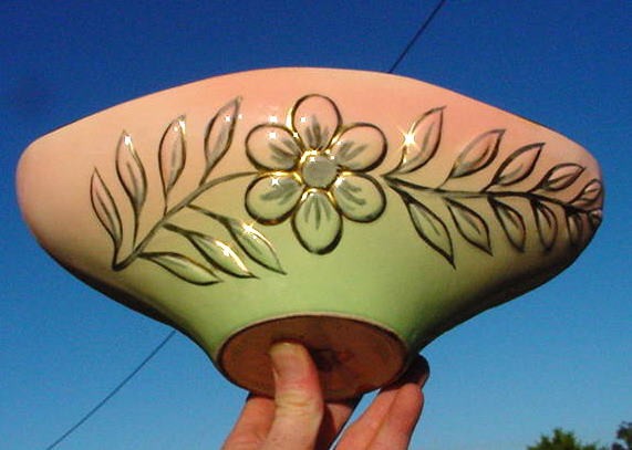 Title (ebay affiliate link): VINTAGE AUSTRALIAN DIANA POTTERY VASE-EMBOSSED FLOWER-GREEN,PINK&YELLOW-B44-RARE