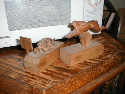 Tortoise & the Hare,Wood carvings.