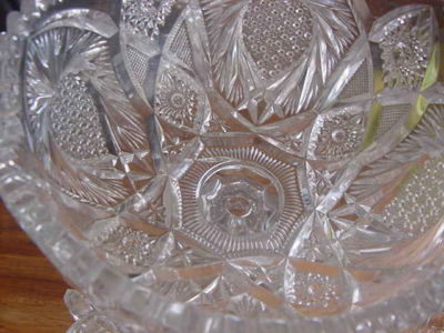 Title (ebay affiliate link): Cut Glass Stem Bowl Punch Bowl Fruit Estate Sale Antique Pineapple w Cups 7Piece