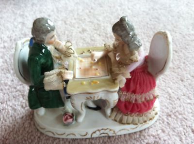 Title (ebay affiliate link): Antique German Dresden Porcelain Lace Male/Female Grouping "Checker Game"