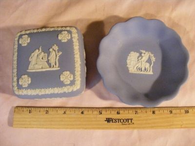 2 OLD LIGHT BLUE WEDGWOOD ITEMS: TRINKET BOX & BOWL