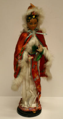 Antique Japanese Doll, Paper Mache Face & Cloth Body w Kimono & Fur Trimmed Cape