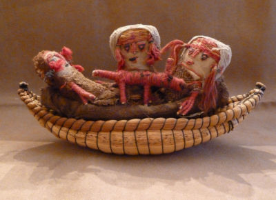 Title (ebay affiliate link): ANTIQUE PRE COLUMBIAN ANCIENT TEXTILE BURIAL CHANCAY 3 DOLLS DOG CANOE PERU