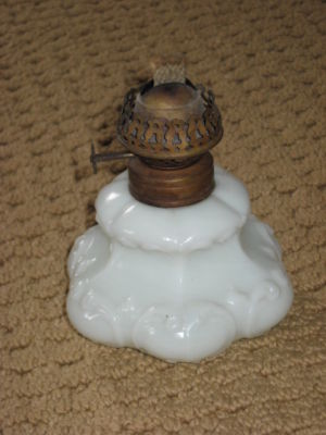VINTAGE MILK GLASS MINIATURE OIL LAMP
