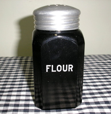 HAZEL ATLAS MILK GLASS BLACK FIRED ON FLOUR SHAKER*NICE
