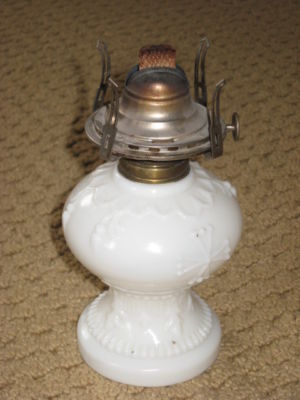 VINTAGE MILK GLASS MINIATURE OIL LAMP