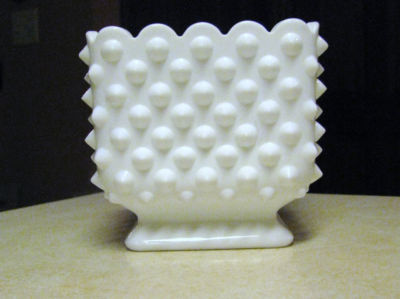 Title (ebay affiliate link): VINTAGE FENTON HOBNAIL SQUARE DISH OR PLANTER SCALLOPED RIM FOOTED MILK GLASS