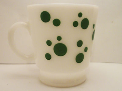 Green Polka Dot Hazel Atlas Milk Glass Mug